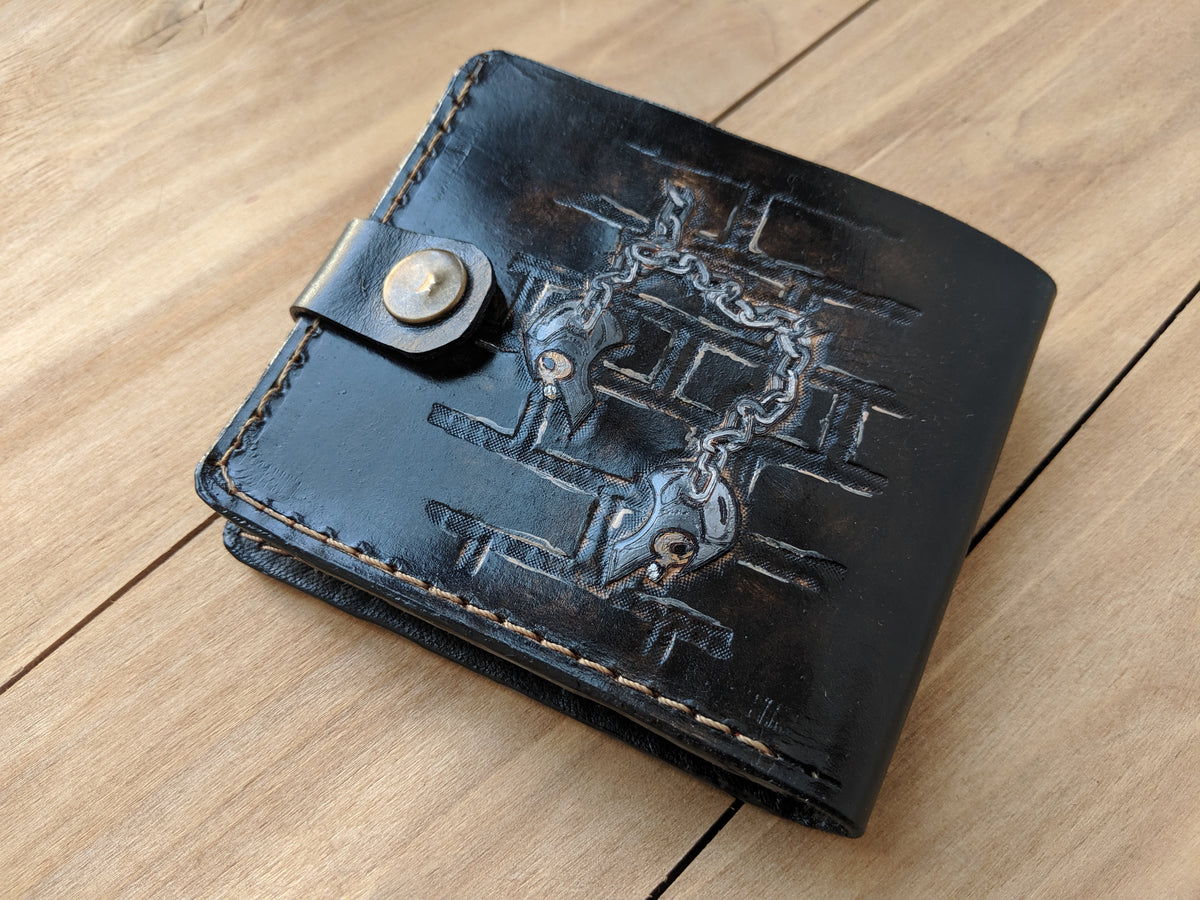 Our exquisite handmade leather wallet, crafted from high-quality vegetable-tanned leather. This unique wallet features stunning hand-tooled and hand-painted designs, making it a true work of art.