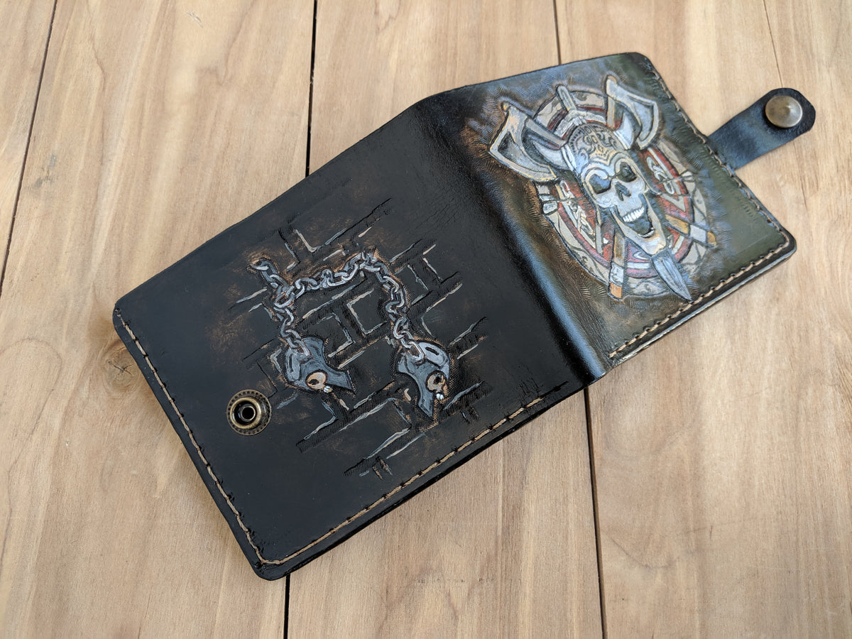 M1S24, Viking Warrior Skull & Skeleton Bifold Leather Wallet