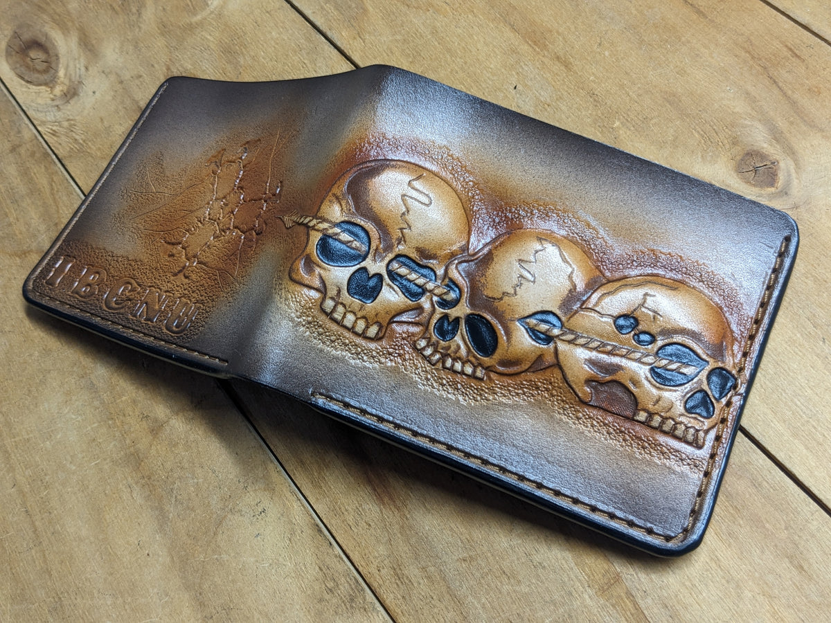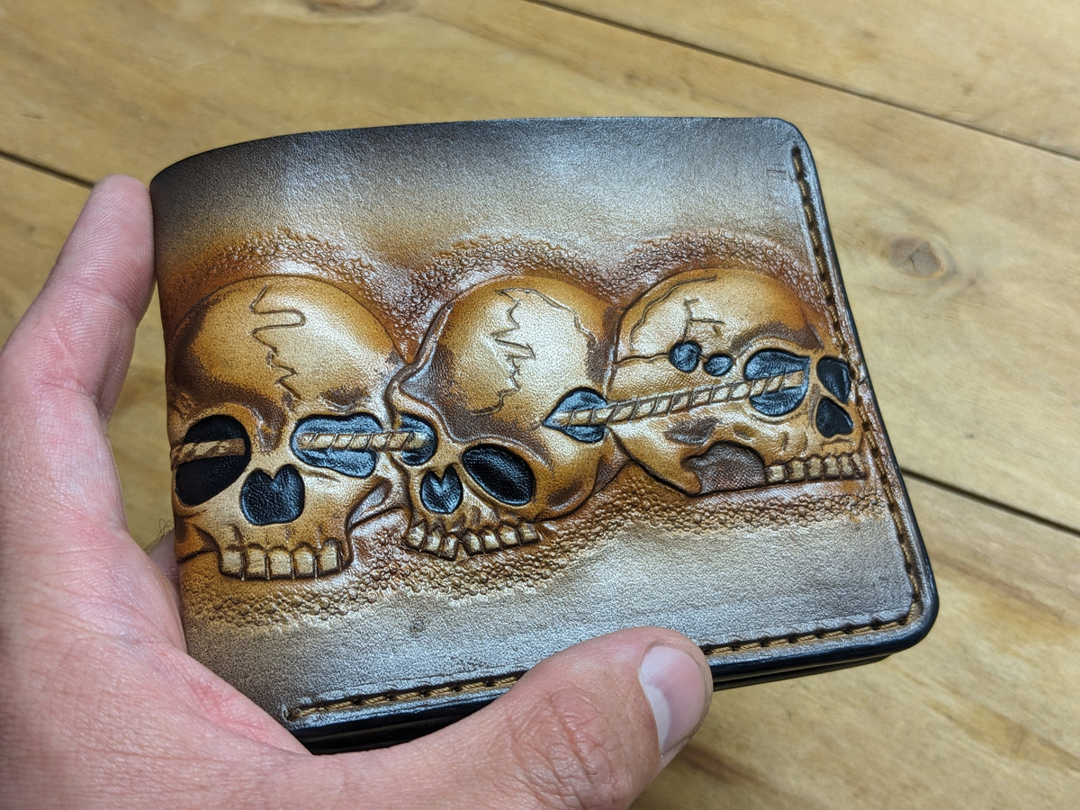 M1S30, Western Three Skulls & Whip Skeleton Leather Wallet