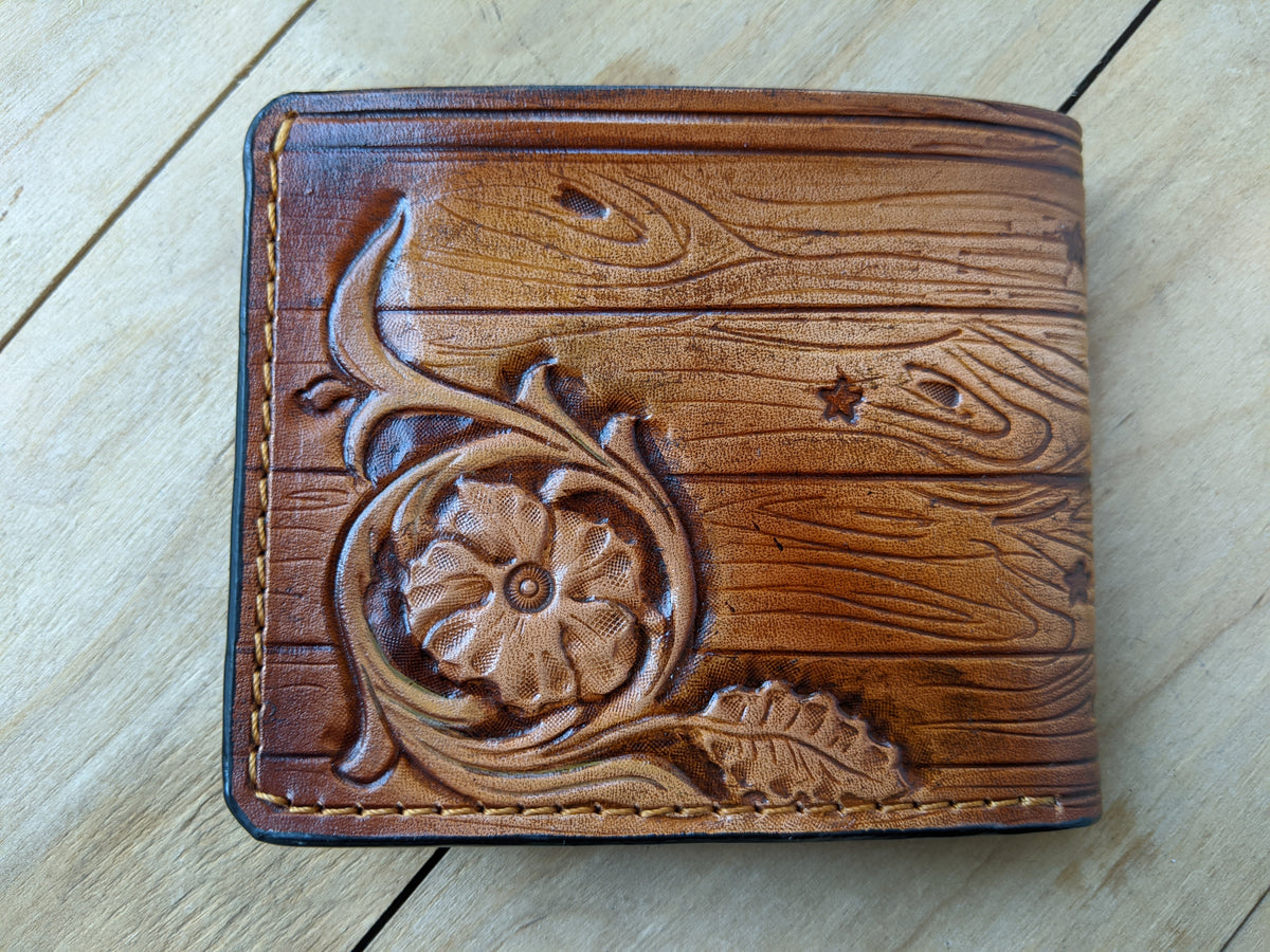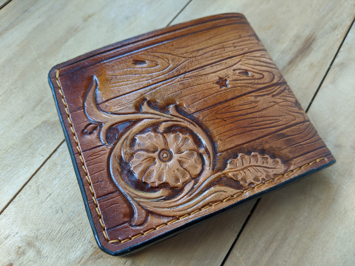 Our exquisite handmade leather wallet, crafted from high-quality vegetable-tanned leather. This unique wallet features stunning hand-tooled and hand-painted designs, making it a true work of art.