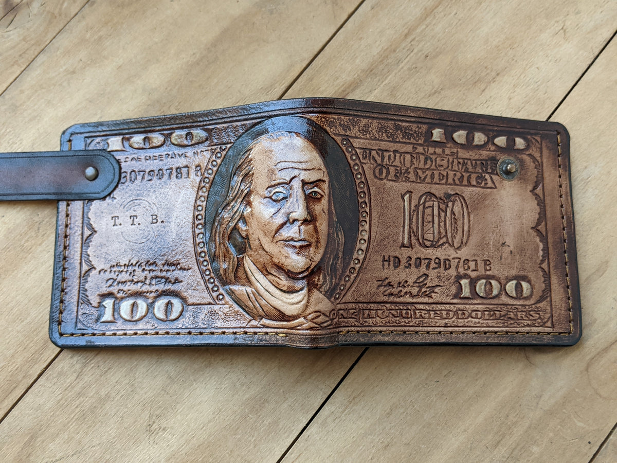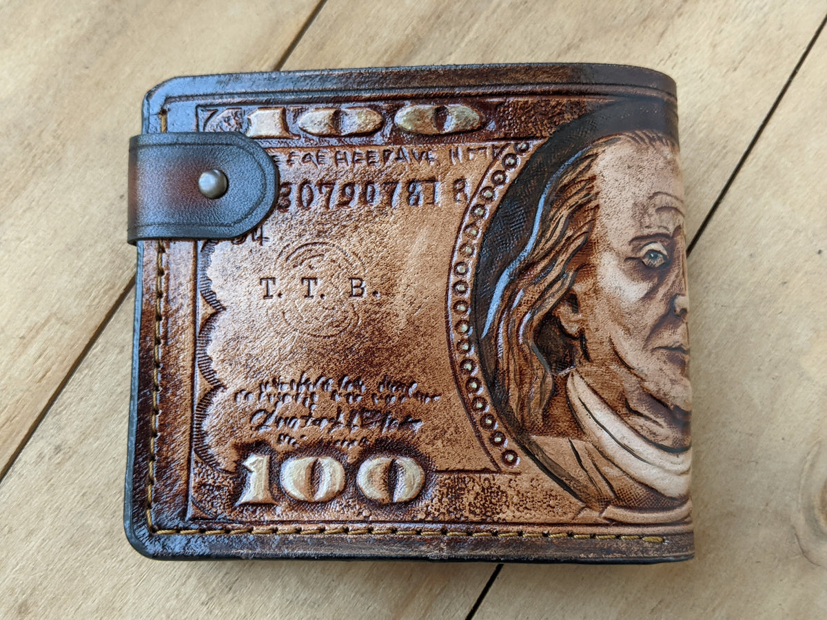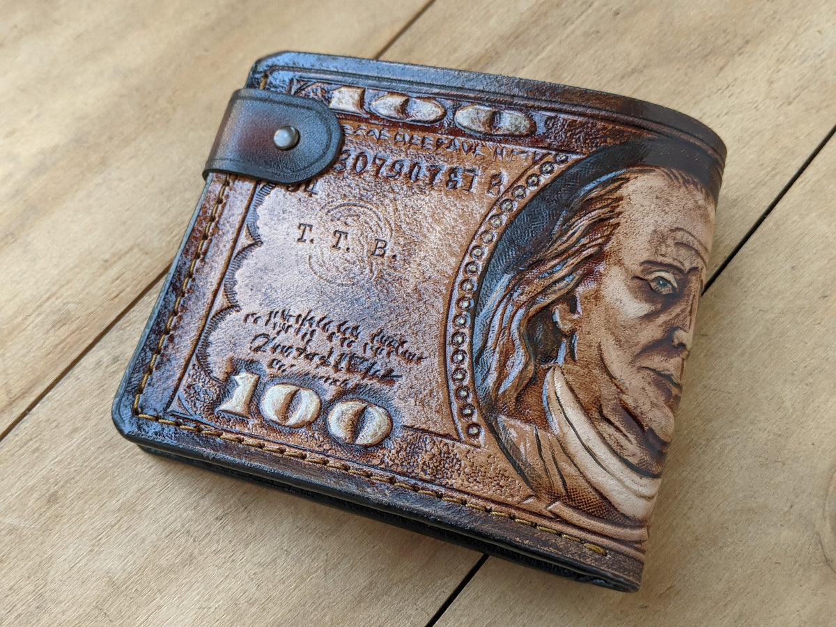 M1V18, 100 Dollar Bill & Benjamin Franklin Leather Wallet