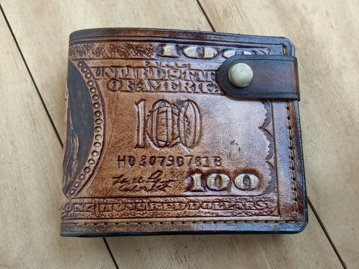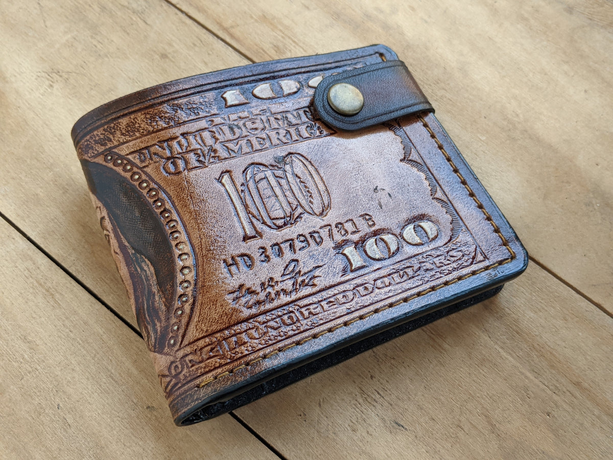 Introducing One Hundred-Dollar Bill Embossed Bifold Leather Wallet. Featuring a detailed Benjamin Franklin design, this high-quality leather wallet is both functional and stylish. Perfect as a Father’s Day gift, or a unique money-themed gift for him, it combines classic American currency design with the durability and elegance of genuine leather. An ideal gift for anyone who appreciates money gift ideas and a touch of luxury in their everyday carry.