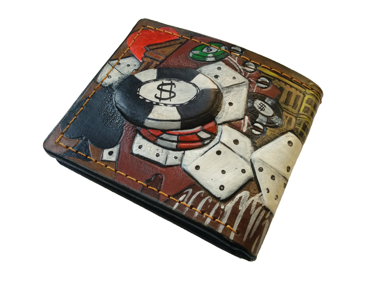 Our exquisite handmade Genuine leather wallet, crafted from high-quality Full Grain Vegetable Tanned Leather. This unique wallet features stunning hand-tooled and hand-painted designs, making it a true work of art.