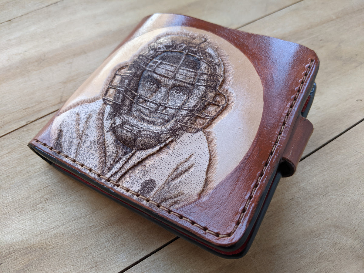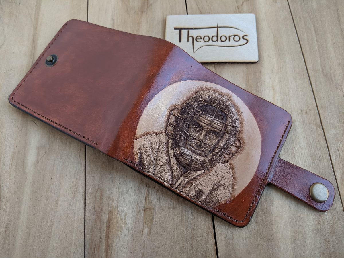 Our exquisite handmade Genuine leather wallet, crafted from high-quality Full Grain Vegetable Tanned Leather. This unique wallet features stunning hand-tooled and hand-painted designs, making it a true work of art.