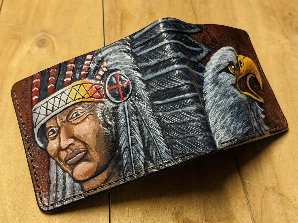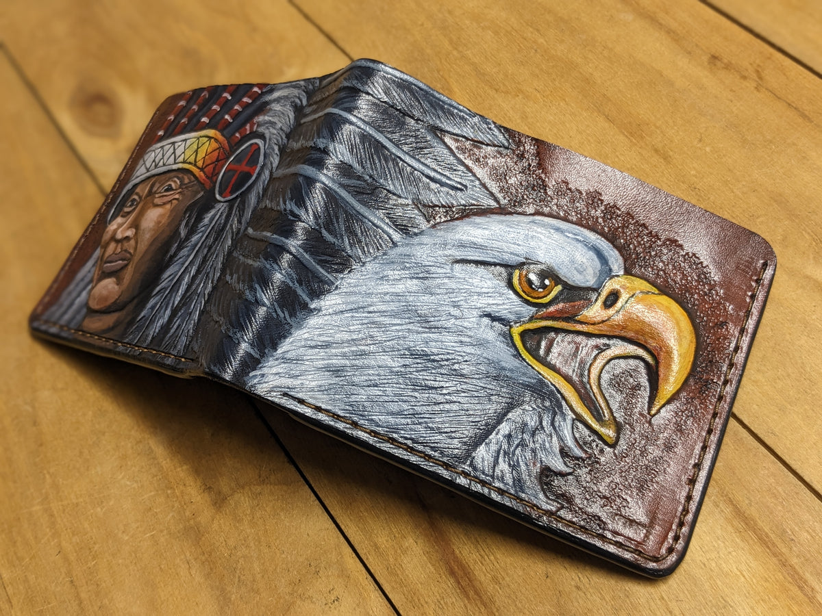M1V24, Bald Eagle & Indian Chief Headdress Leather Wallet