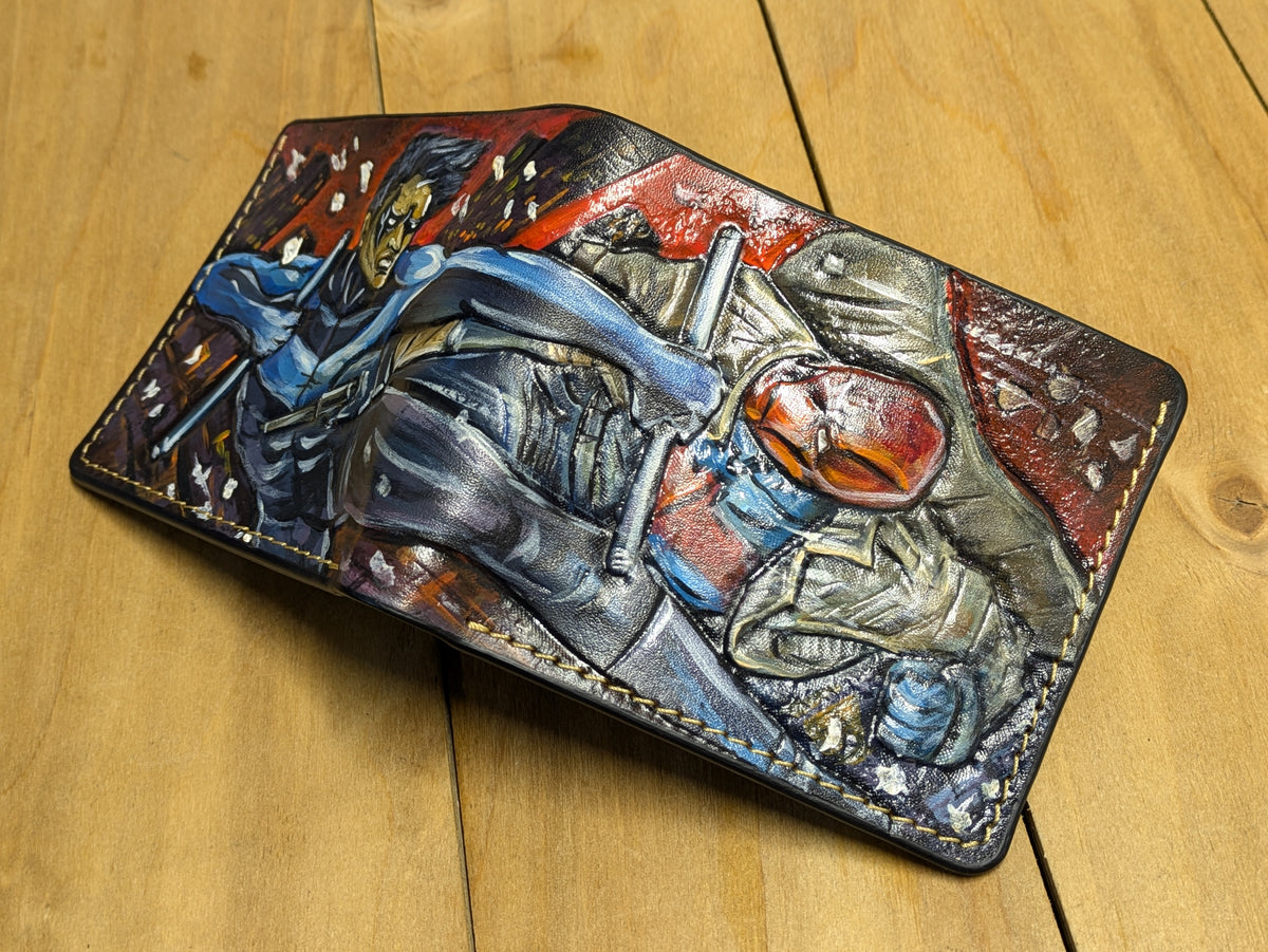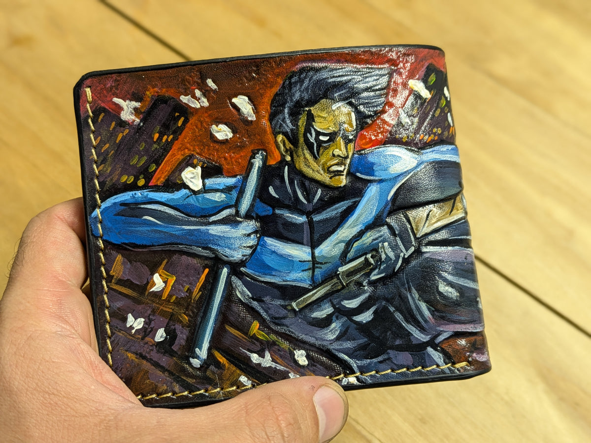 Handmade leather wallet featuring an embossed design of Red Hood, Nightwing, and Jason Todd — iconic figures from the extended Batman family in the DC Comics universe. Crafted from genuine leather, this bold bifold captures the legacy of vigilante justice, brotherhood, and redemption. With dynamic detailing and gritty energy, it’s the perfect gift for fans of the Bat-Family, superhero collectors, and lovers of DC’s darker, more complex heroes.