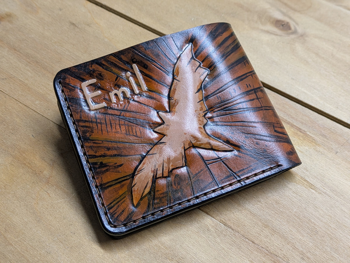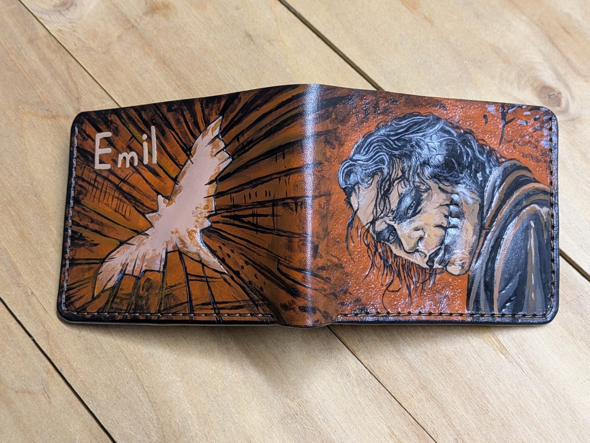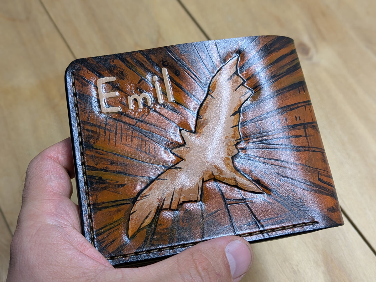 Introducing our exquisite handmade leather wallet, crafted from high-quality vegetable-tanned leather. This unique wallet features stunning hand-tooled and hand-painted designs, making it a true work of art.