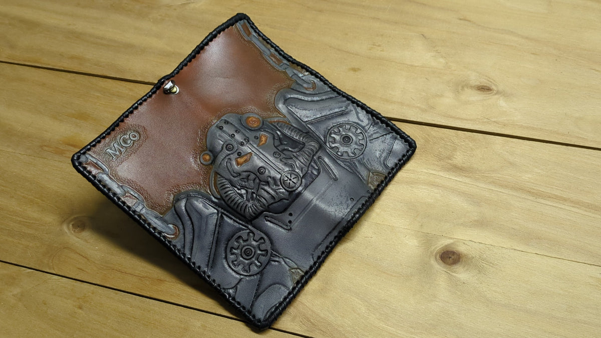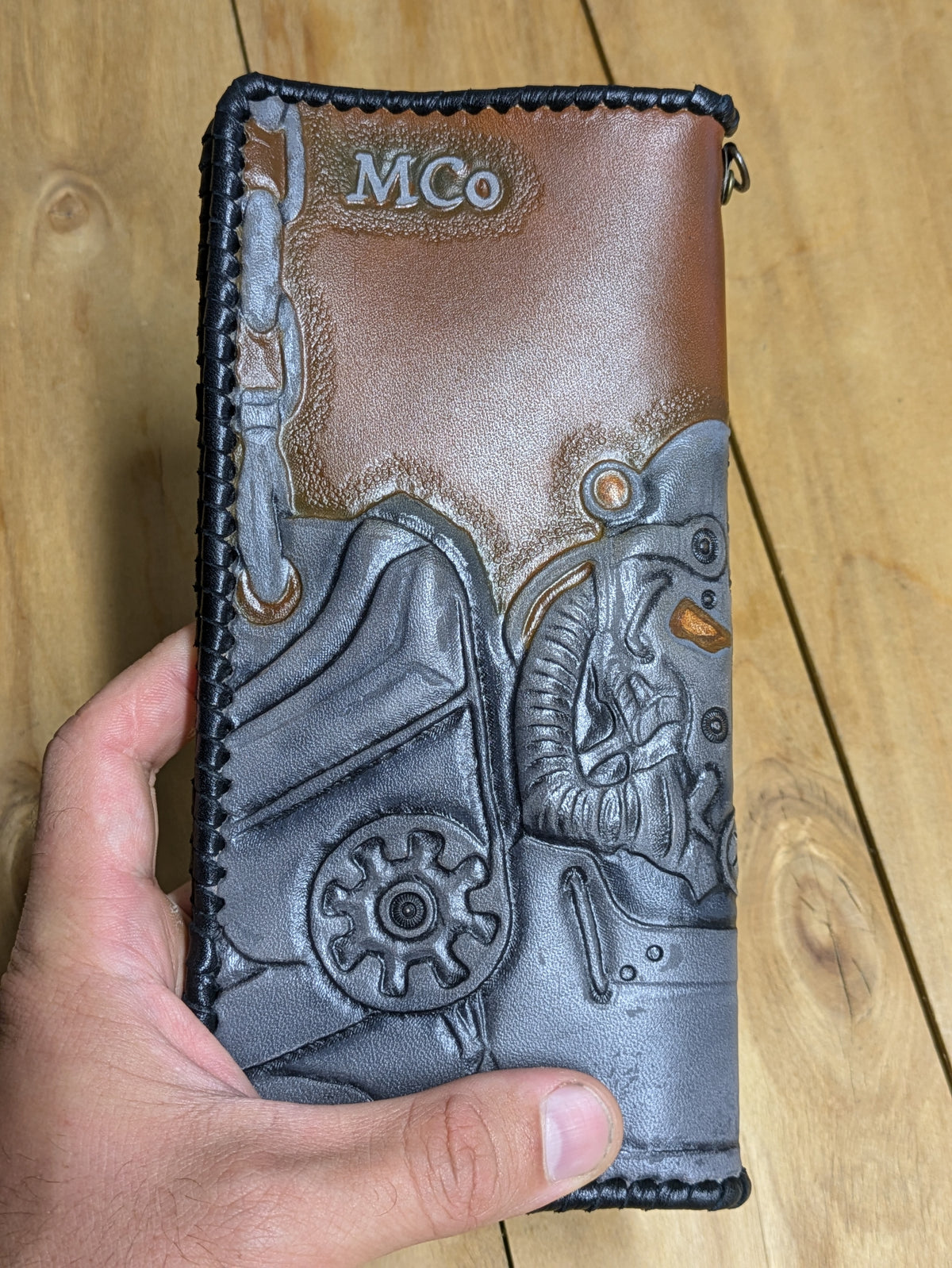Celebrate your love for Fallout with this handmade leather long biker wallet. Featuring intricate designs inspired by T-60 Power Armor, Vault 13, and Vault Boy, this chain wallet is a perfect gift for gamers and Fallout fans. Made with premium craftsmanship, it's customizable for the ultimate personalized touch. Whether you’re a Vault Dweller or a Brotherhood of Steel member, this artistic wallet brings the Fallout universe to life with style and function.