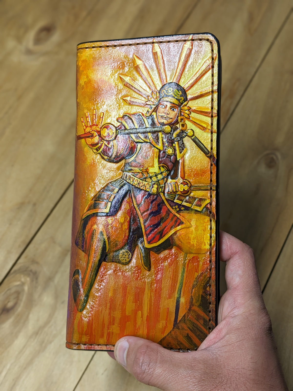 Introducing our exquisite handmade leather wallet, crafted from high-quality vegetable-tanned leather. This unique wallet features stunning hand-tooled and hand-painted designs, making it a true work of art.