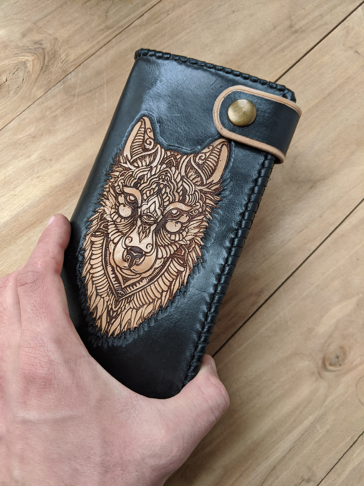 Introducing our exquisite handmade leather wallet, crafted from high-quality vegetable-tanned leather. This unique wallet features stunning hand-tooled and hand-painted designs, making it a true work of art.