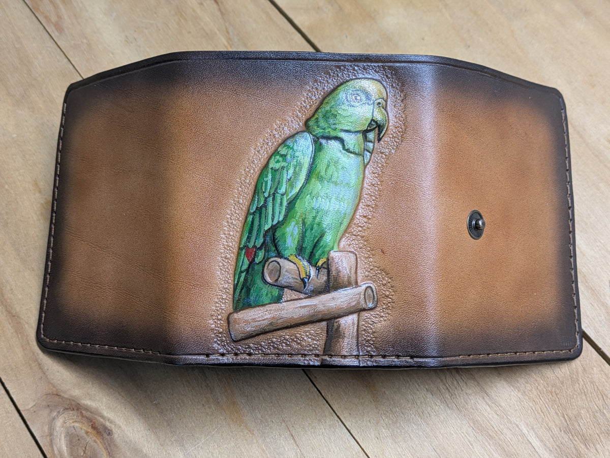 Bring tropical flair to your everyday carry with this handmade trifold leather wallet featuring intricately engraved parrot, macaw, and parakeet designs. Made from premium genuine leather, this wallet offers practical functionality with a vivid artistic touch. Perfect for bird lovers, wildlife fans, or anyone seeking a unique and exotic leather accessory.