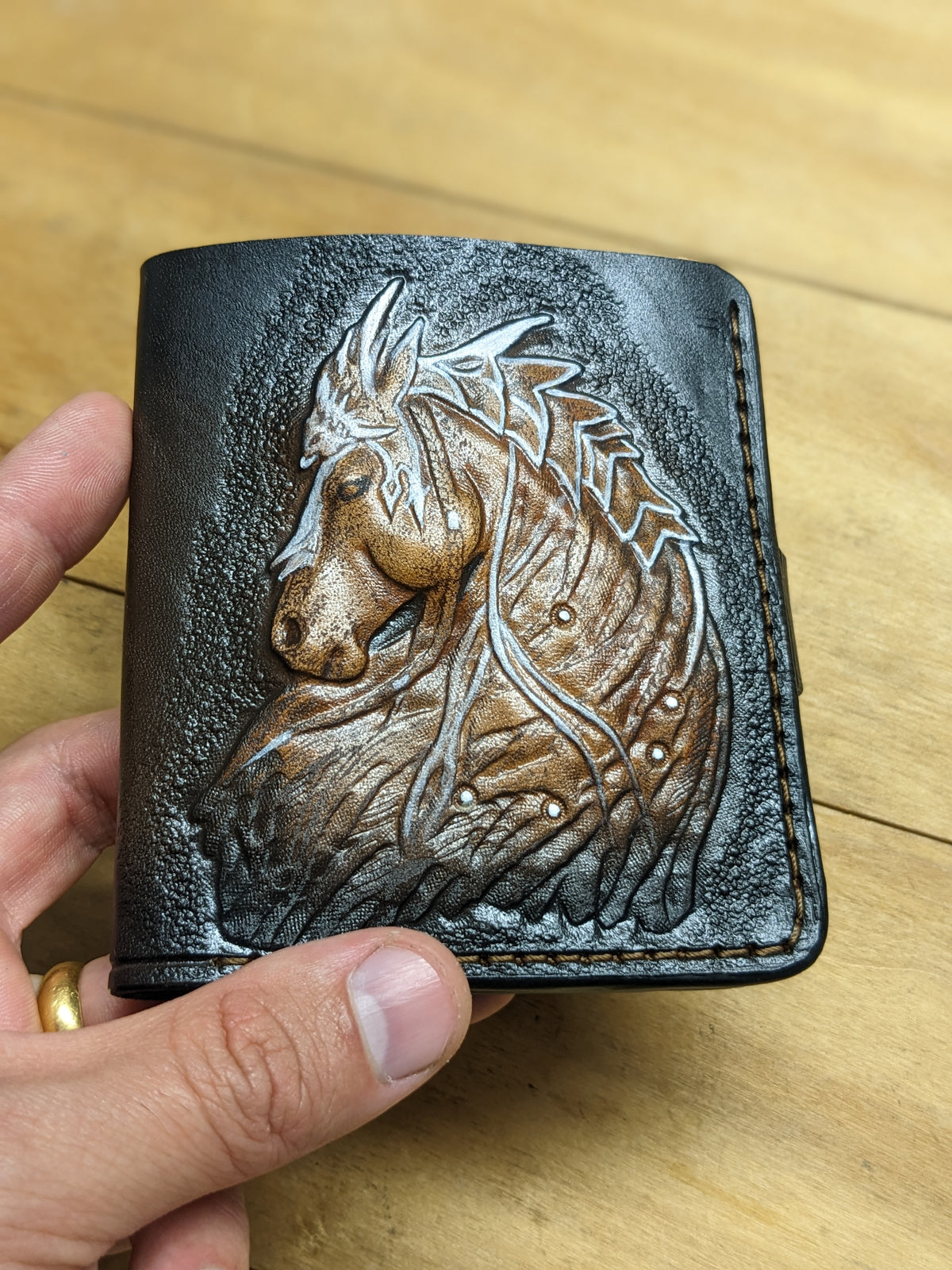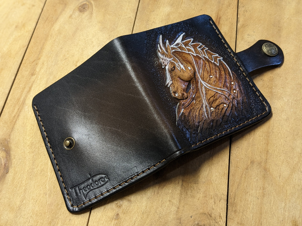 Any logo or initials can be hand-painted on the wallet upon your request. The image, design and form can be changed accordingly.