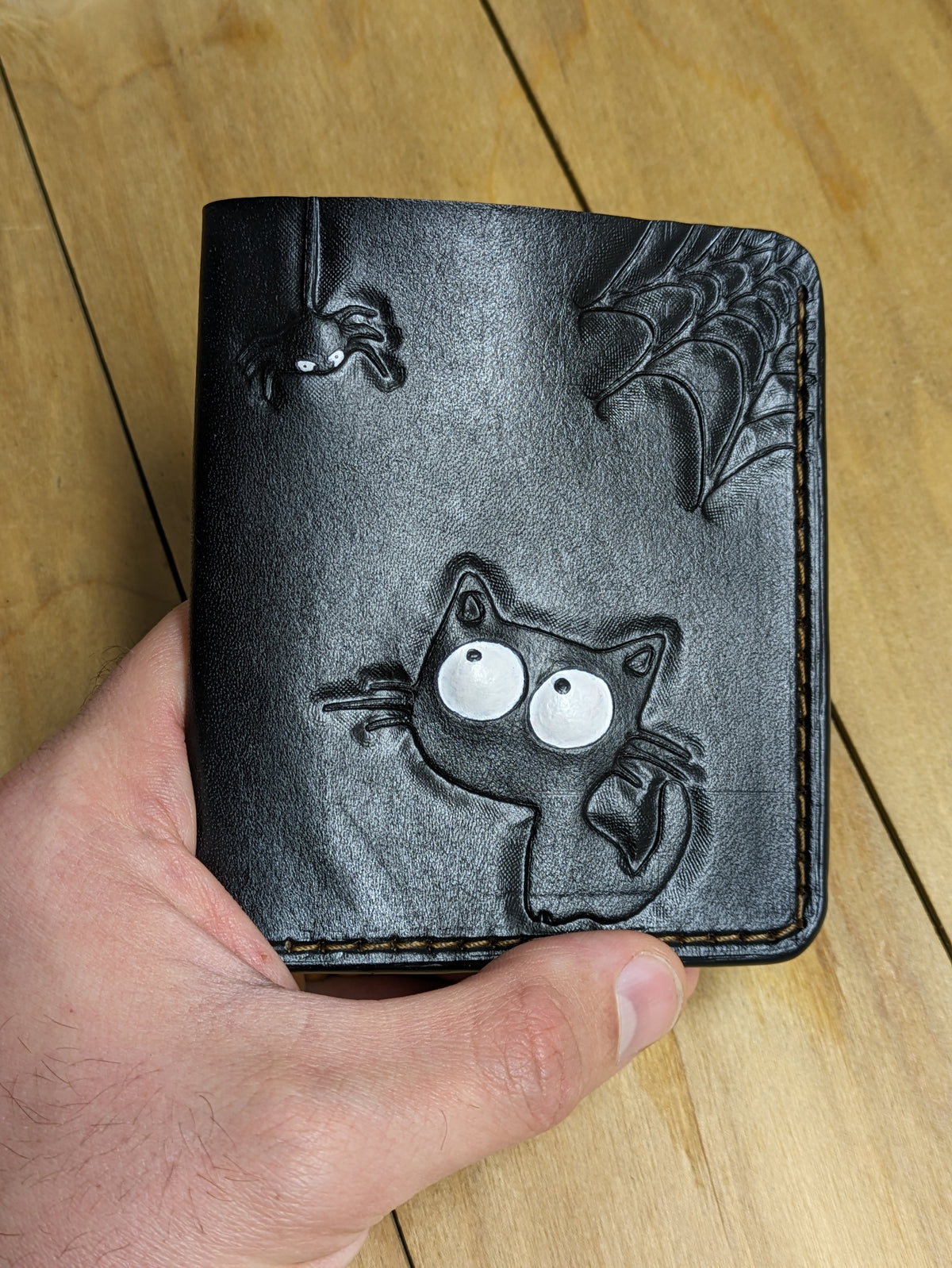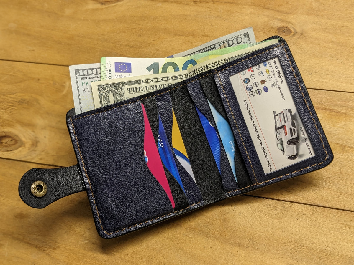 Any logo or initials can be hand-painted on the wallet upon your request. The image, design and form can be changed accordingly.
